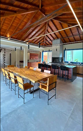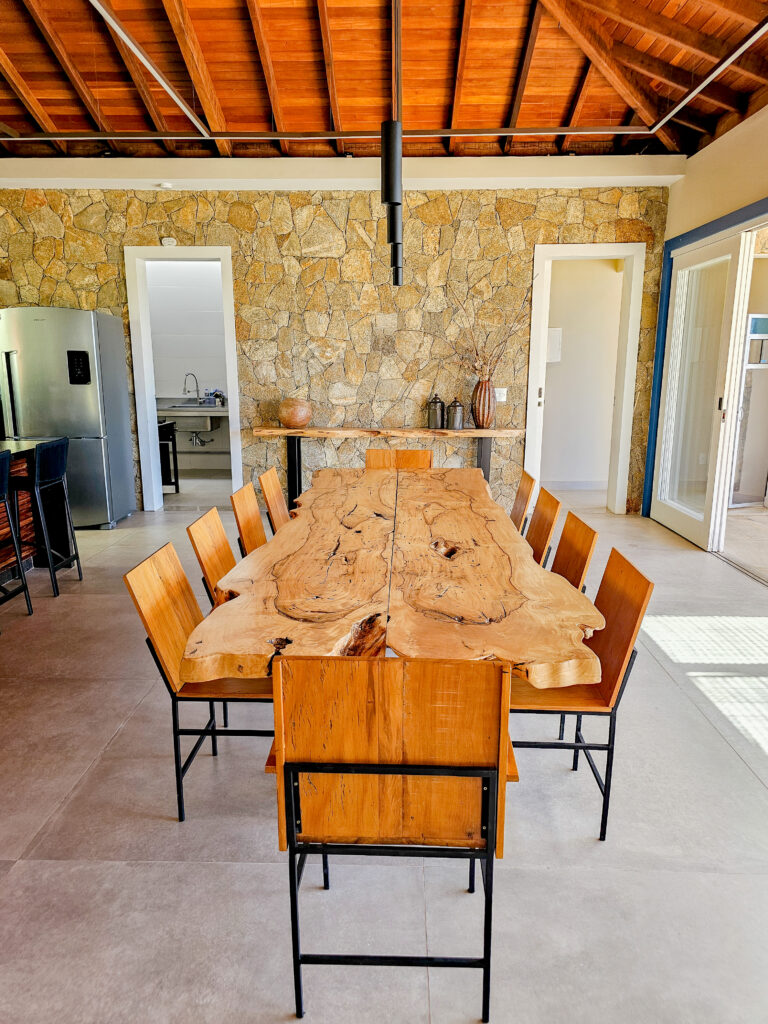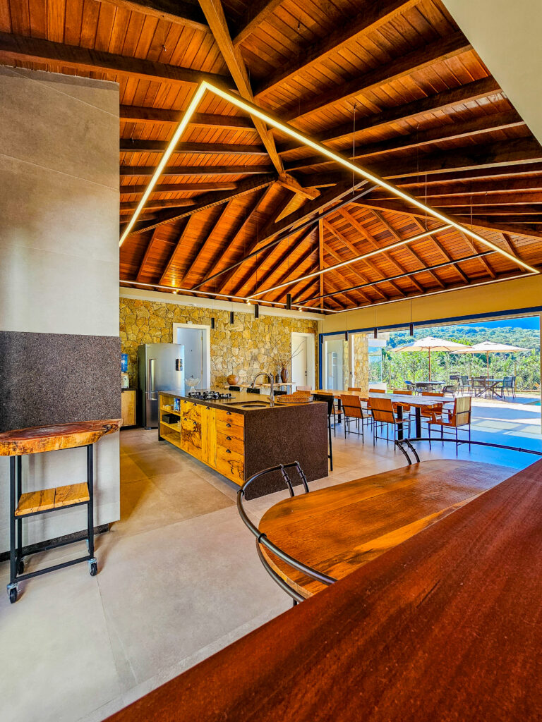 • Cozinha de Apoio: um espaço adicional para facilitar a organização das refeições, especialmente para grupos maiores.