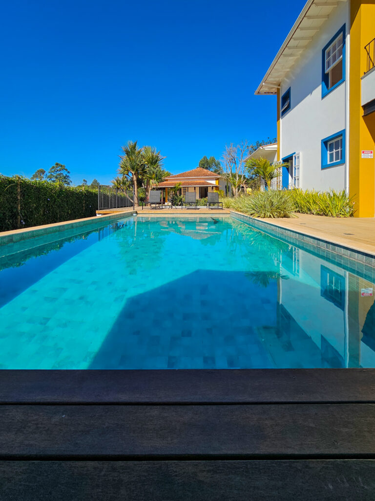 • Área Externa: piscina com vista para a Serra de São José, espreguiçadeiras e espaço relaxante.
