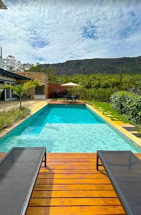 Contamos com suítes acolhedoras, cozinha gourmet completa e uma vista deslumbrante para a serra e piscina.